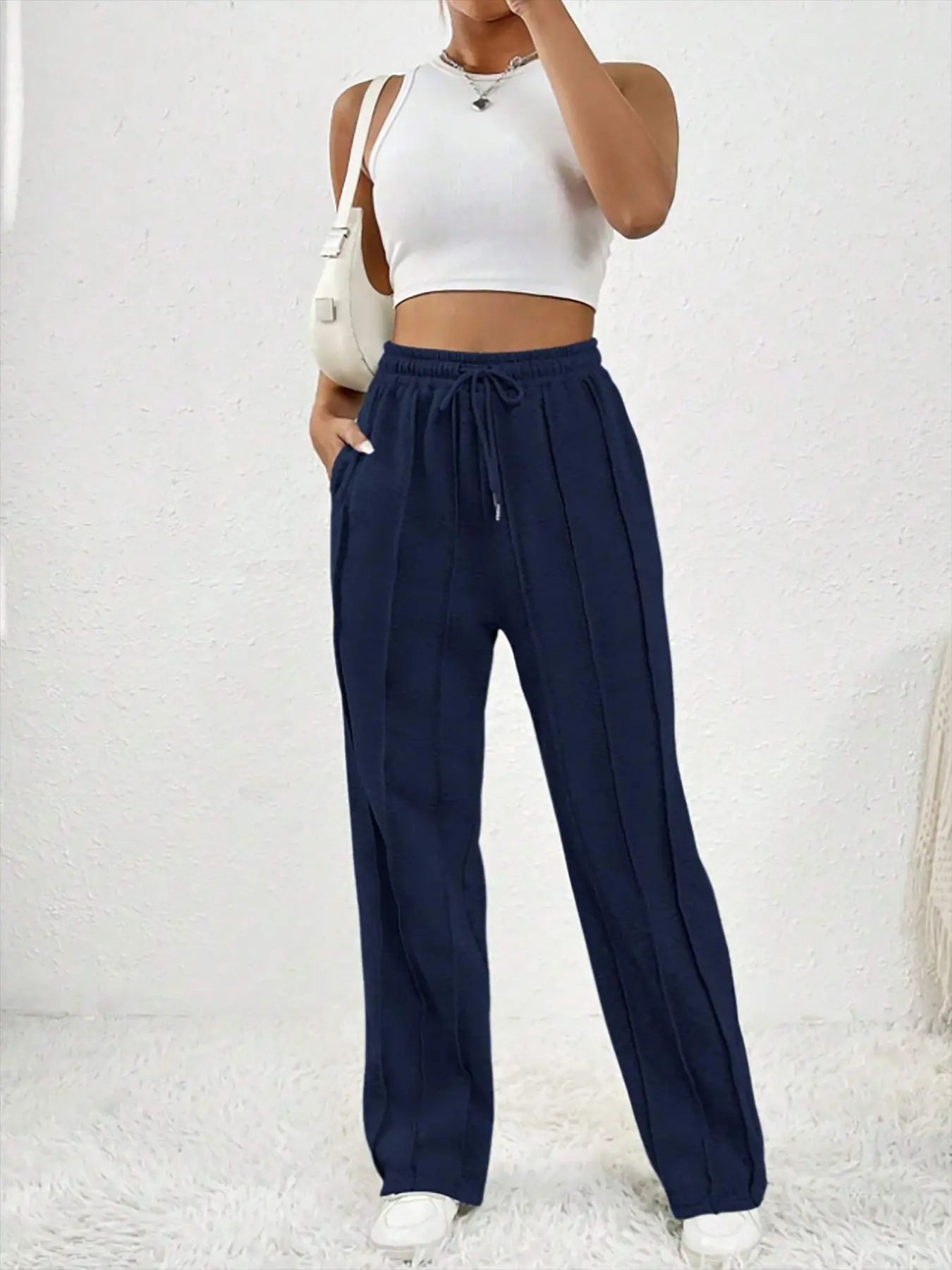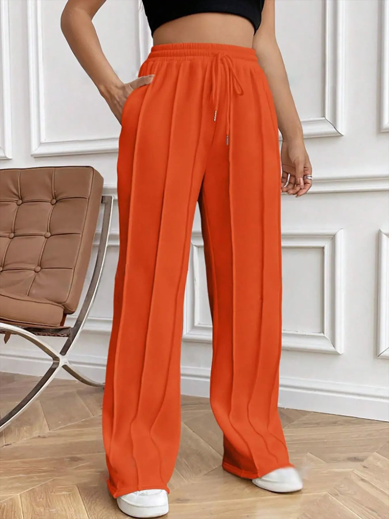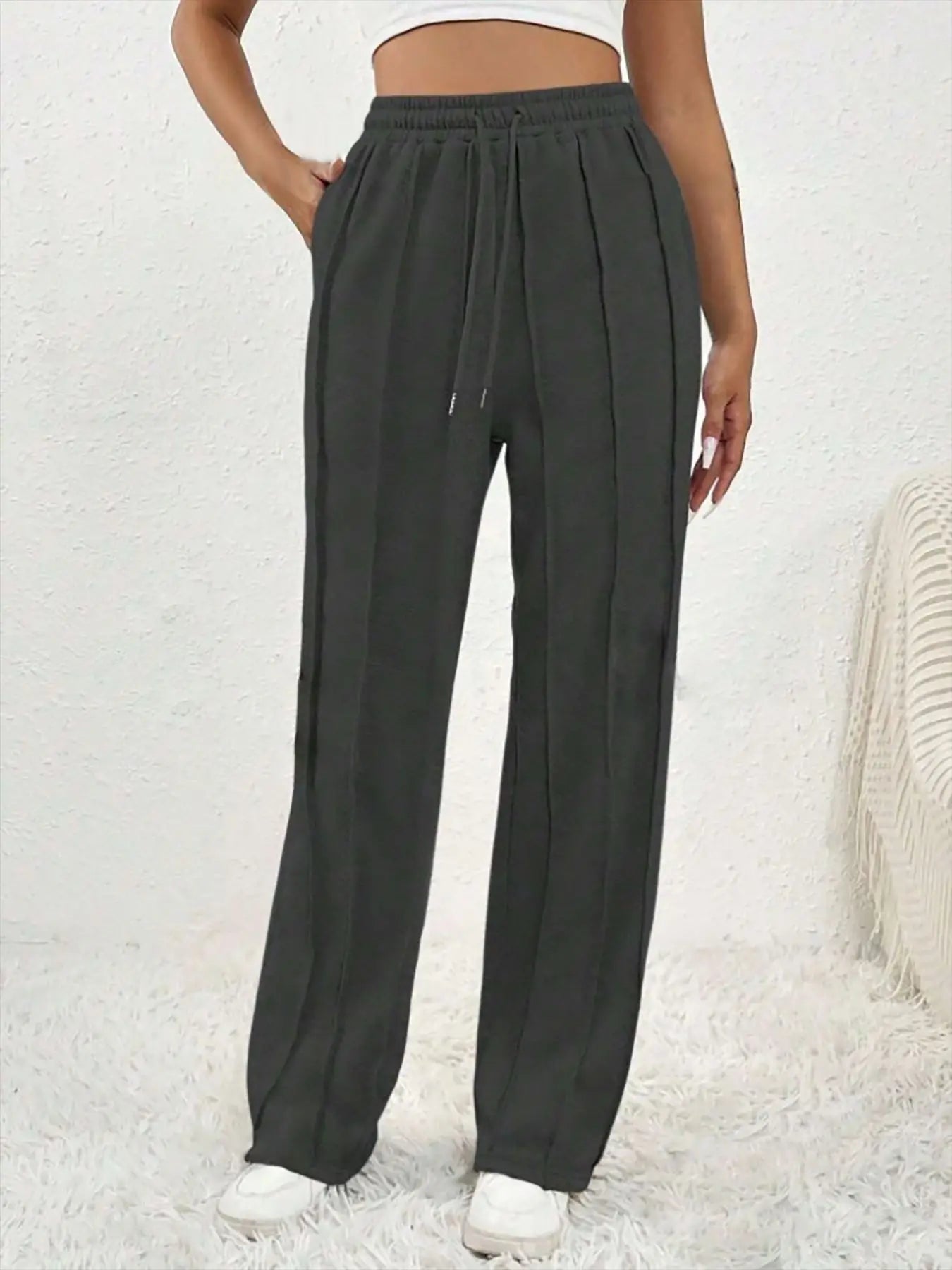 European and American women's casual fashion sweatpants with drawstring, vertical stripes, straight leg sports pants for women