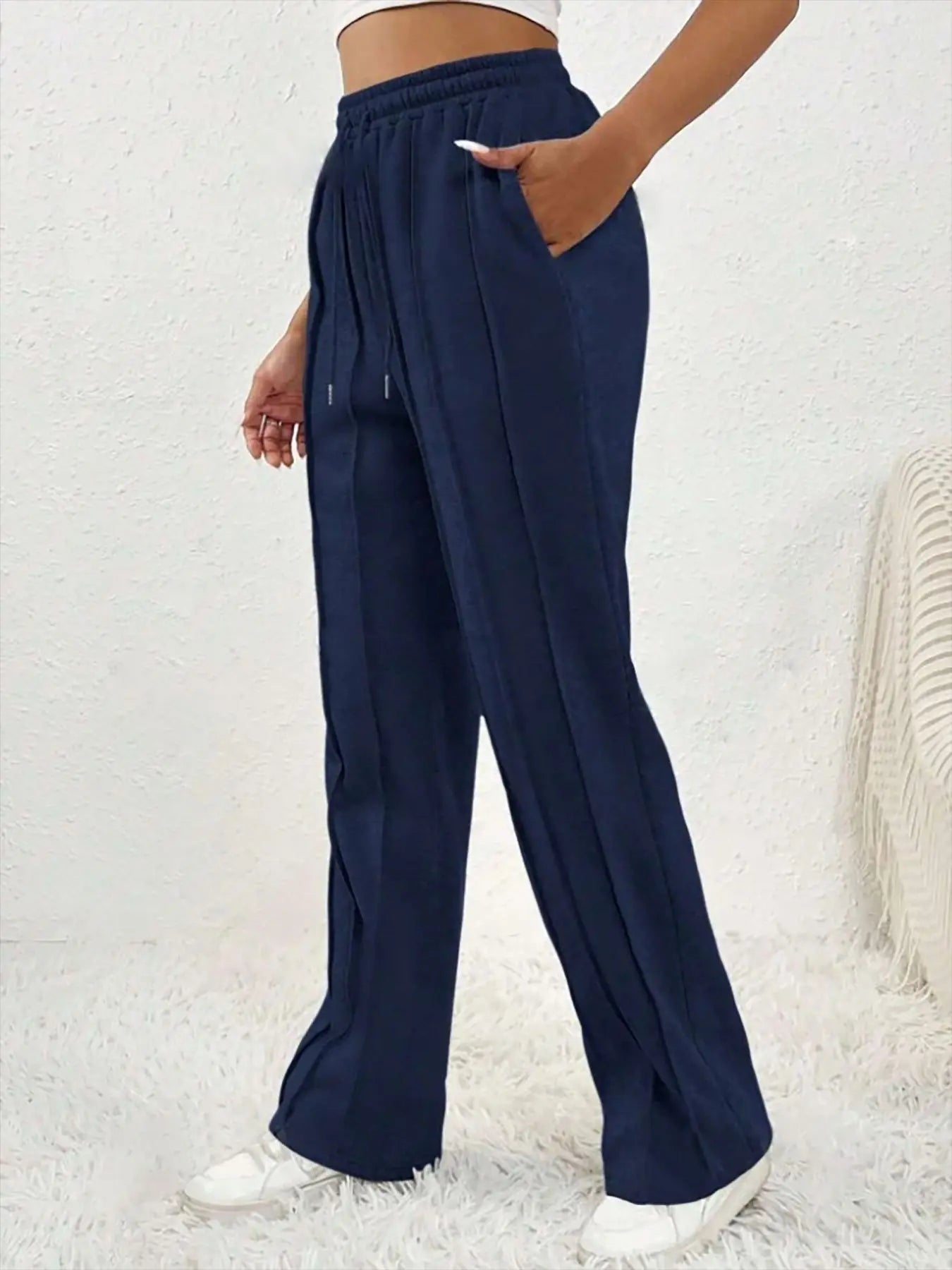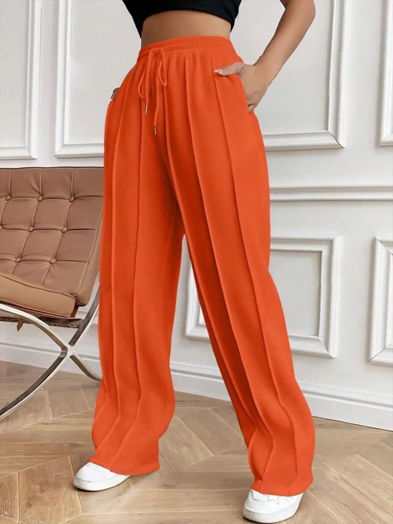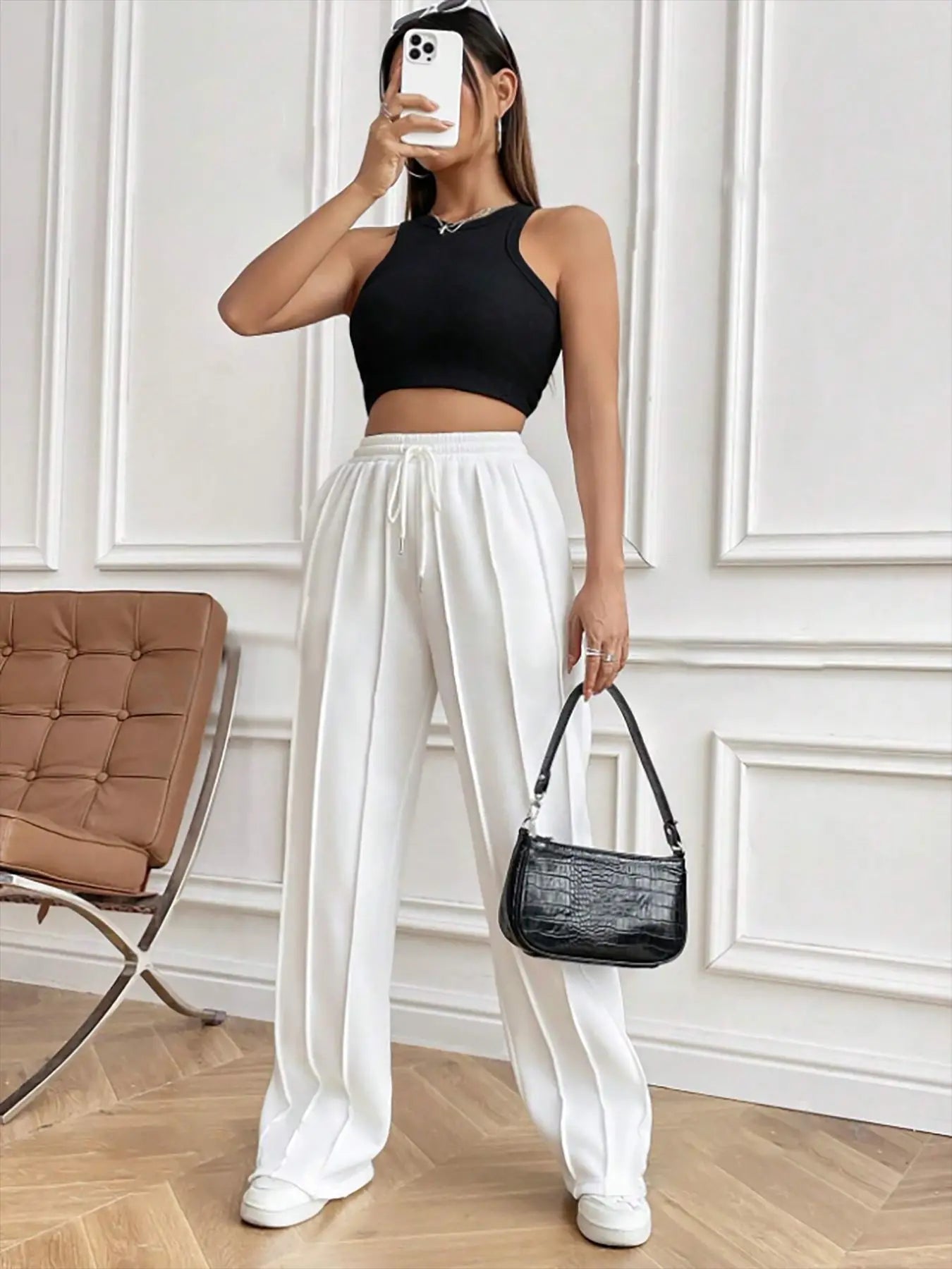 European and American women's casual fashion sweatpants with drawstring, vertical stripes, straight leg sports pants for women