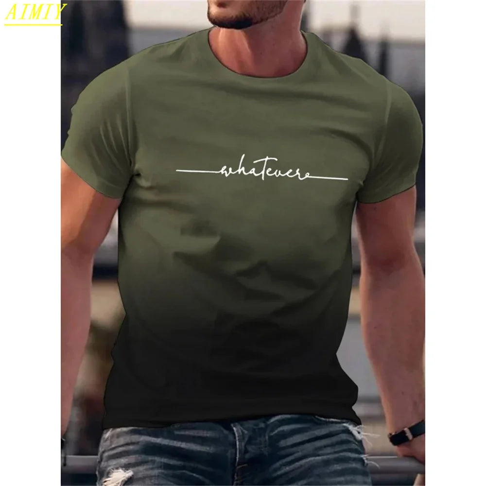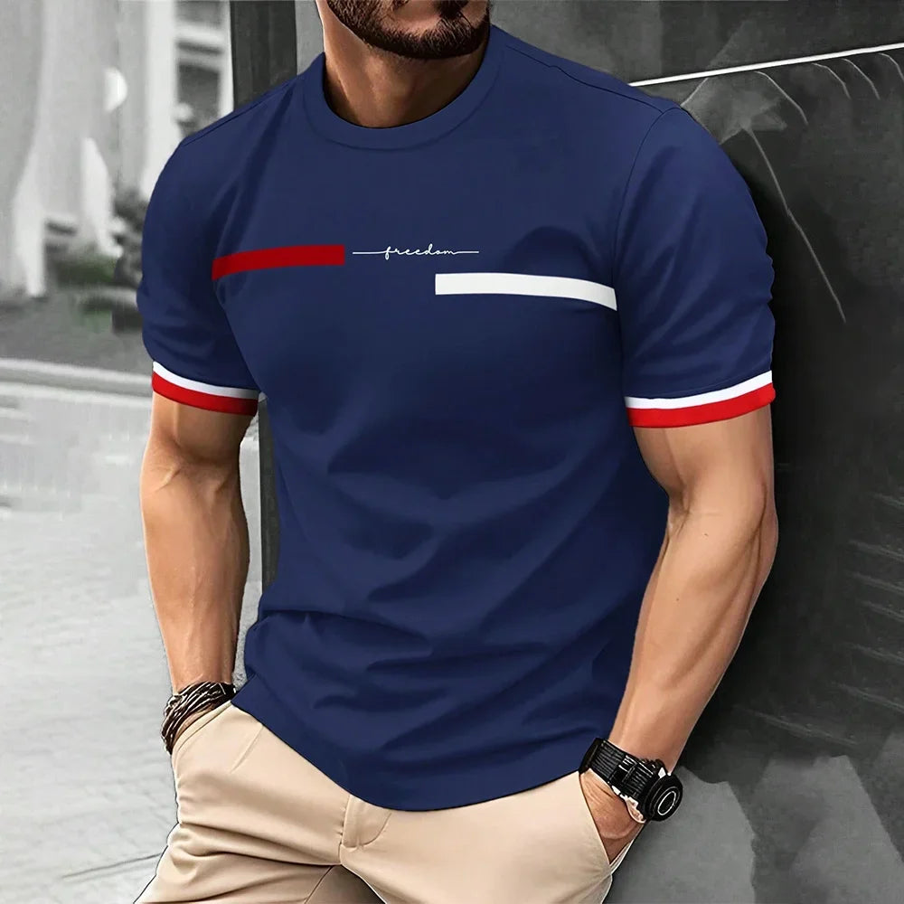 Fashion Casual O-neck Oversized T-shirts Men Tops Summer 3D Stripe Letter Print Men's T Shirt Hip Hop Trend Harajuku Streetwear