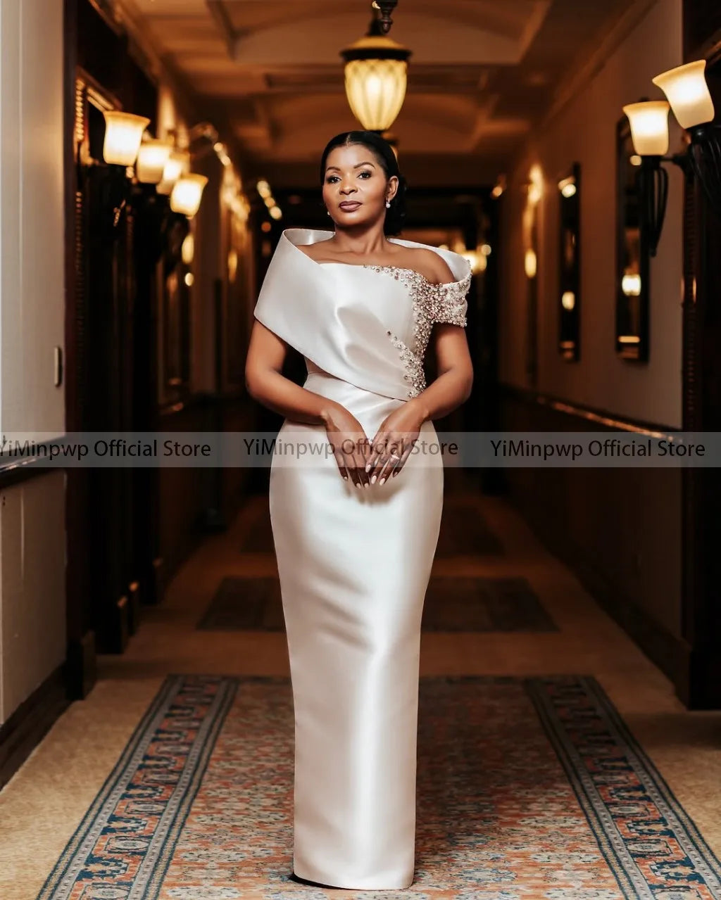 Ivory Mother of the Bride Dress For Wedding Off Shoulder Straight Crystal Satin Wedding Guest Dresses Floor Length Customized